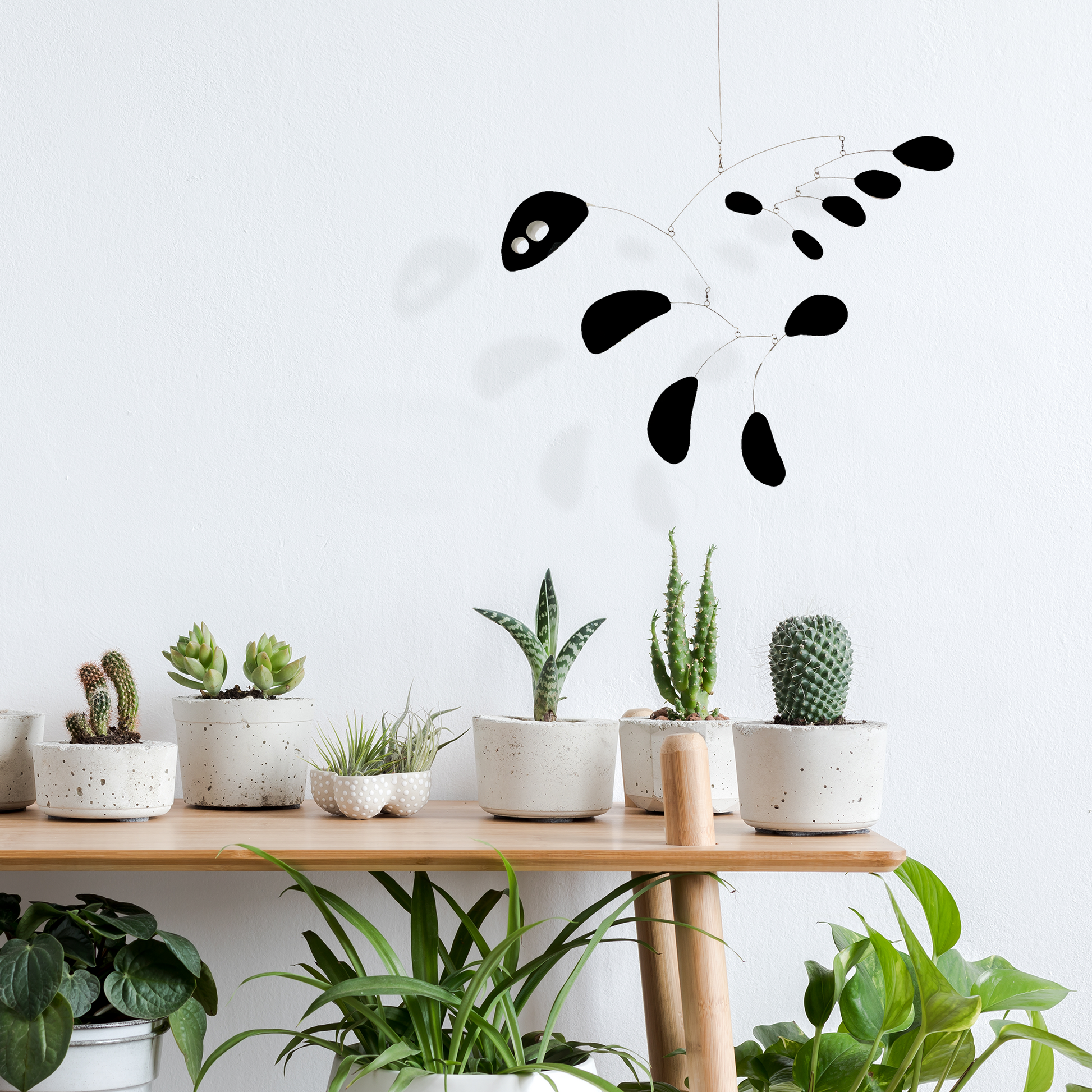 This is "ModCat", part of the GrooveCats Collection inspired by classic mid century modern style. Each mobile is handcrafted with meticulous attention to detail, ensuring that every piece is unique and of the highest quality. Adding a hanging art mobile to your space boosts your tranquility with its calming and beautiful zen-like movement.
