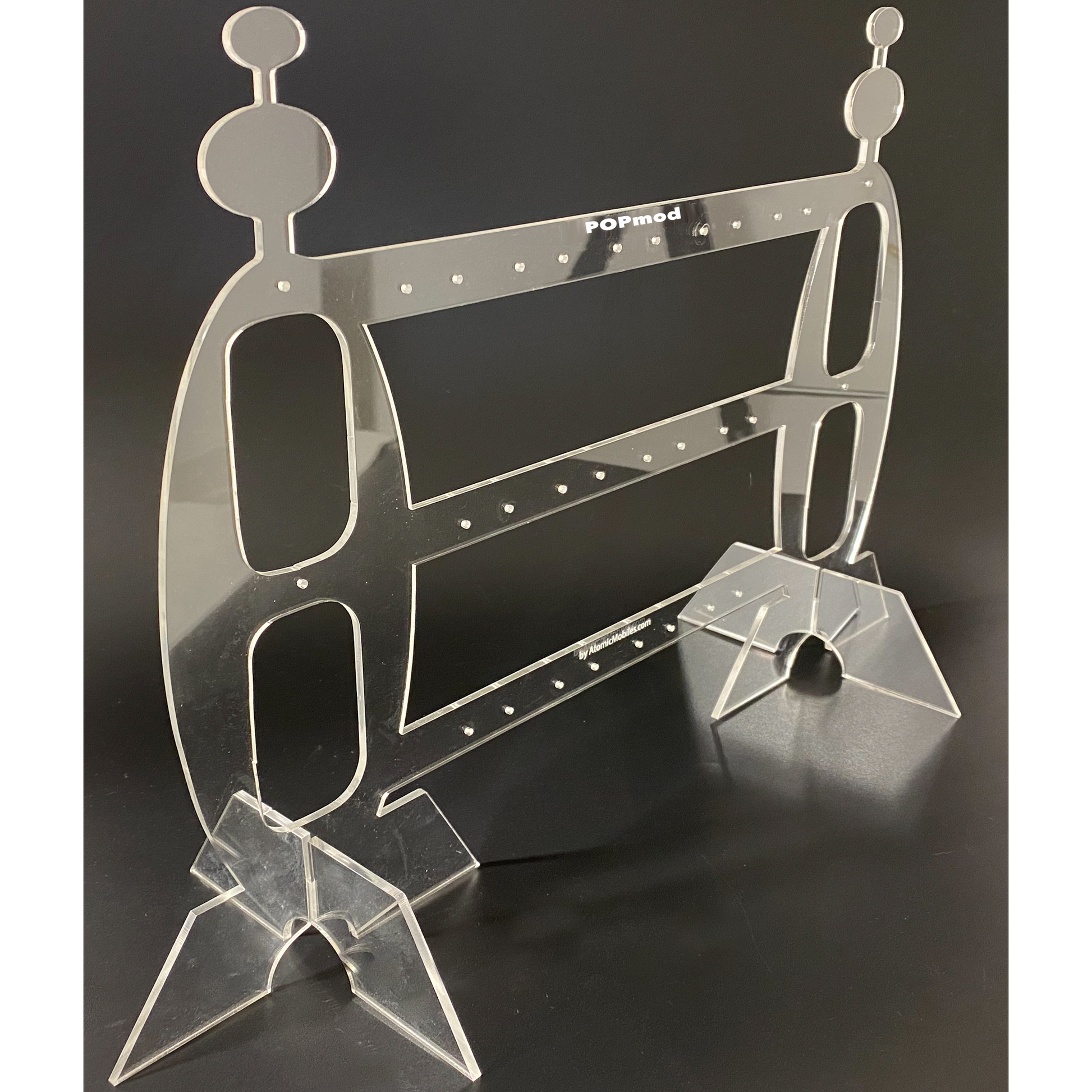 Get your groovy on with these clear lucite acrylic earrings in 10 mod styles and 2 sizes. Purchase the stand separately or with a discounted exclusive set of all 10 pairs of earrings.