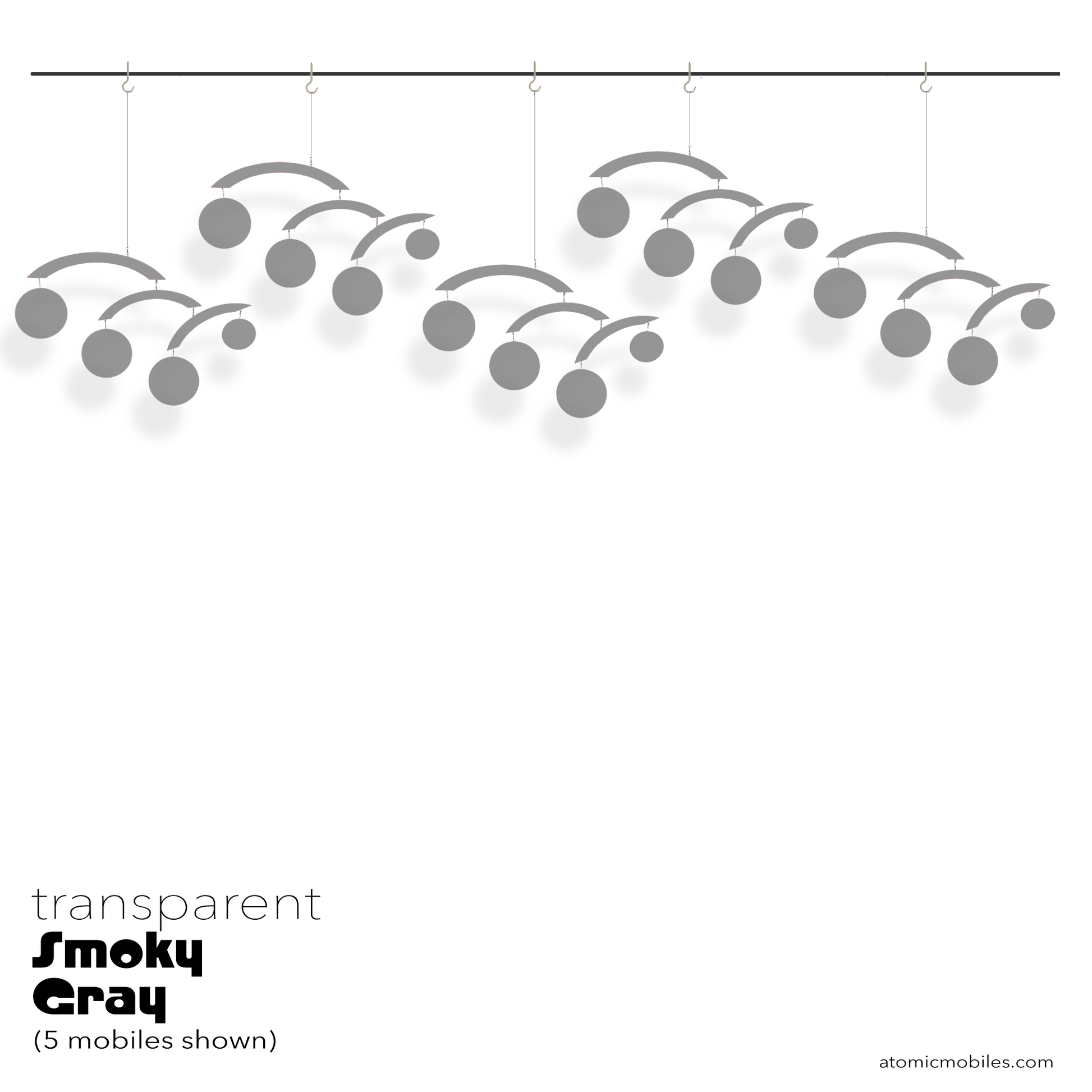 Measurements do not include the nylon line drop down and are measured with recommended spacing of 15" between mobiles. You can hang them farther apart if you wish. You can also hang The Atomic Mobile as far down from the ceiling as you want.